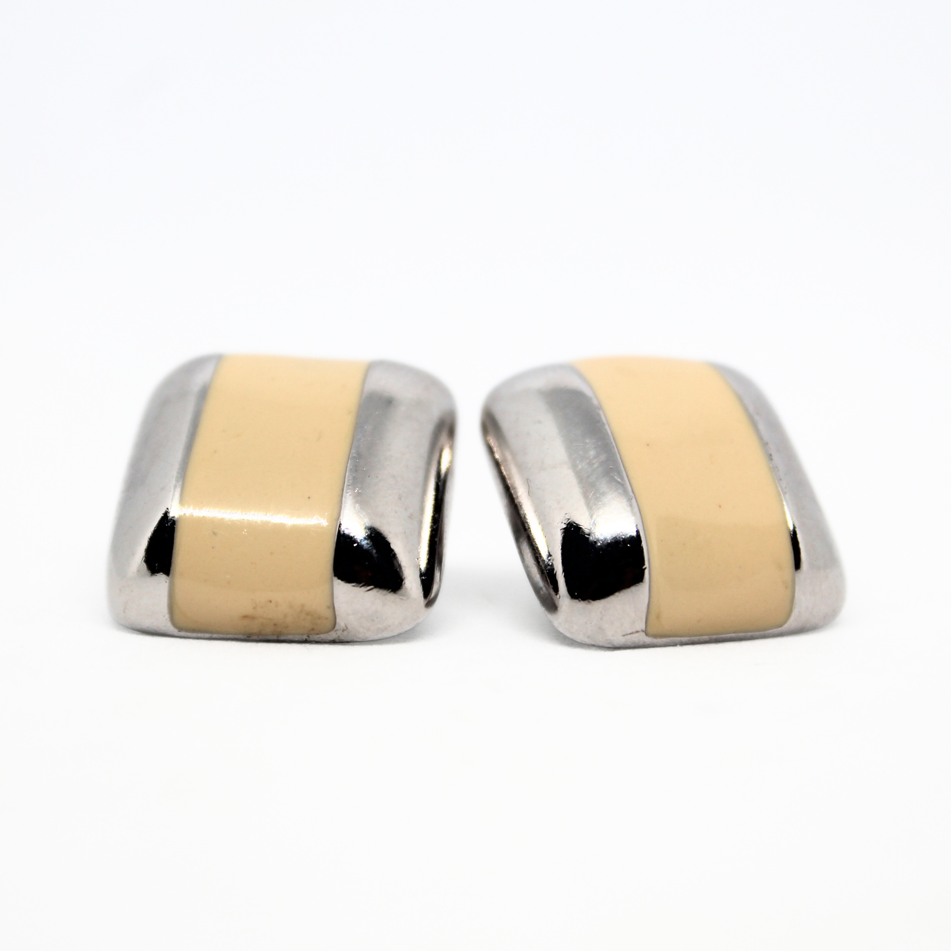 Minimalist, classic and sexy. These gorgeous cream striped square studs scream 90s chic with a timeless look. High shine and very lightweight.