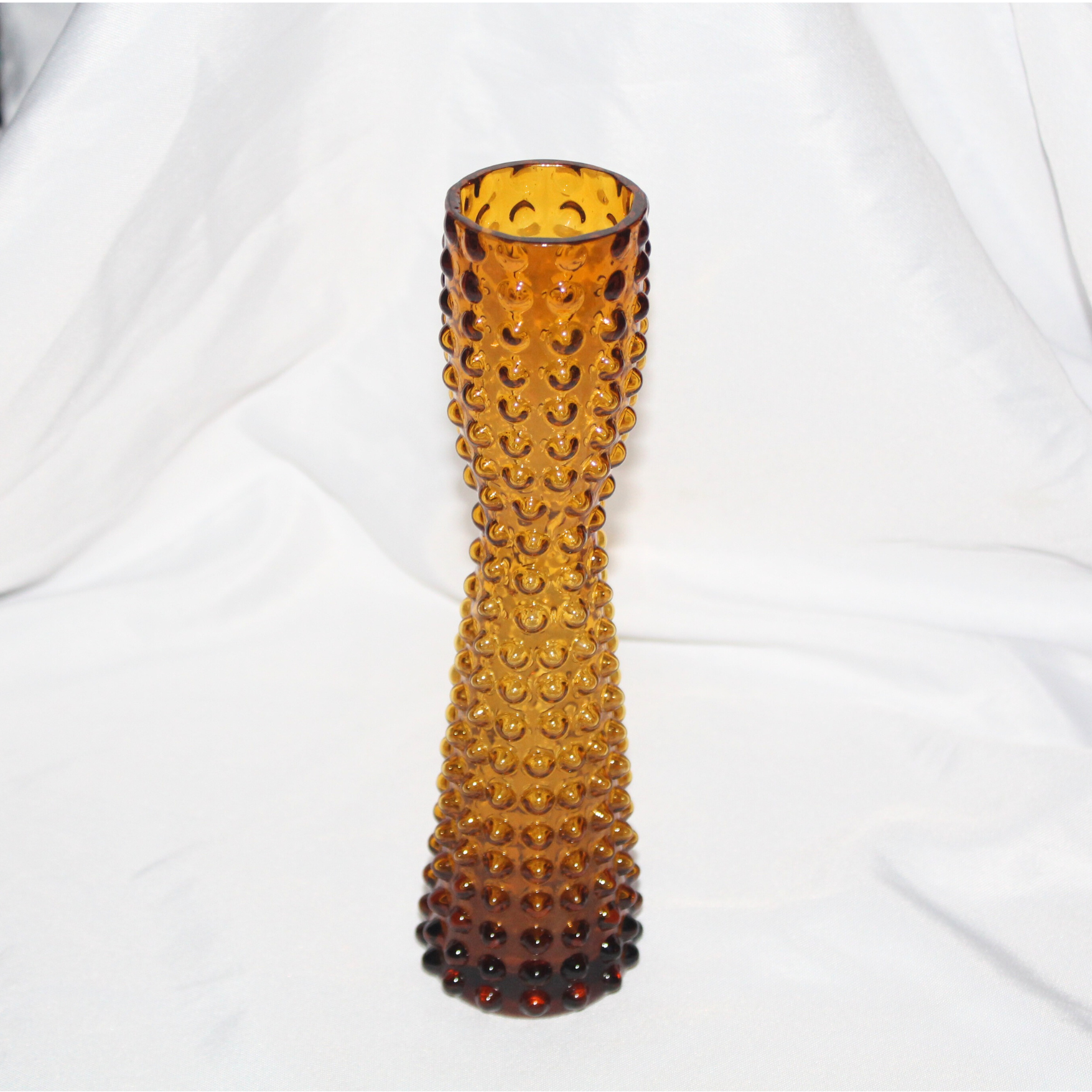 Delicately hand-blown in warm amber glass, this vintage hobnail bud vase is a charming accent piece that brings soft color and texture to any tabletop. Perfect for a single stem or a petite posy, it shines in any setting.