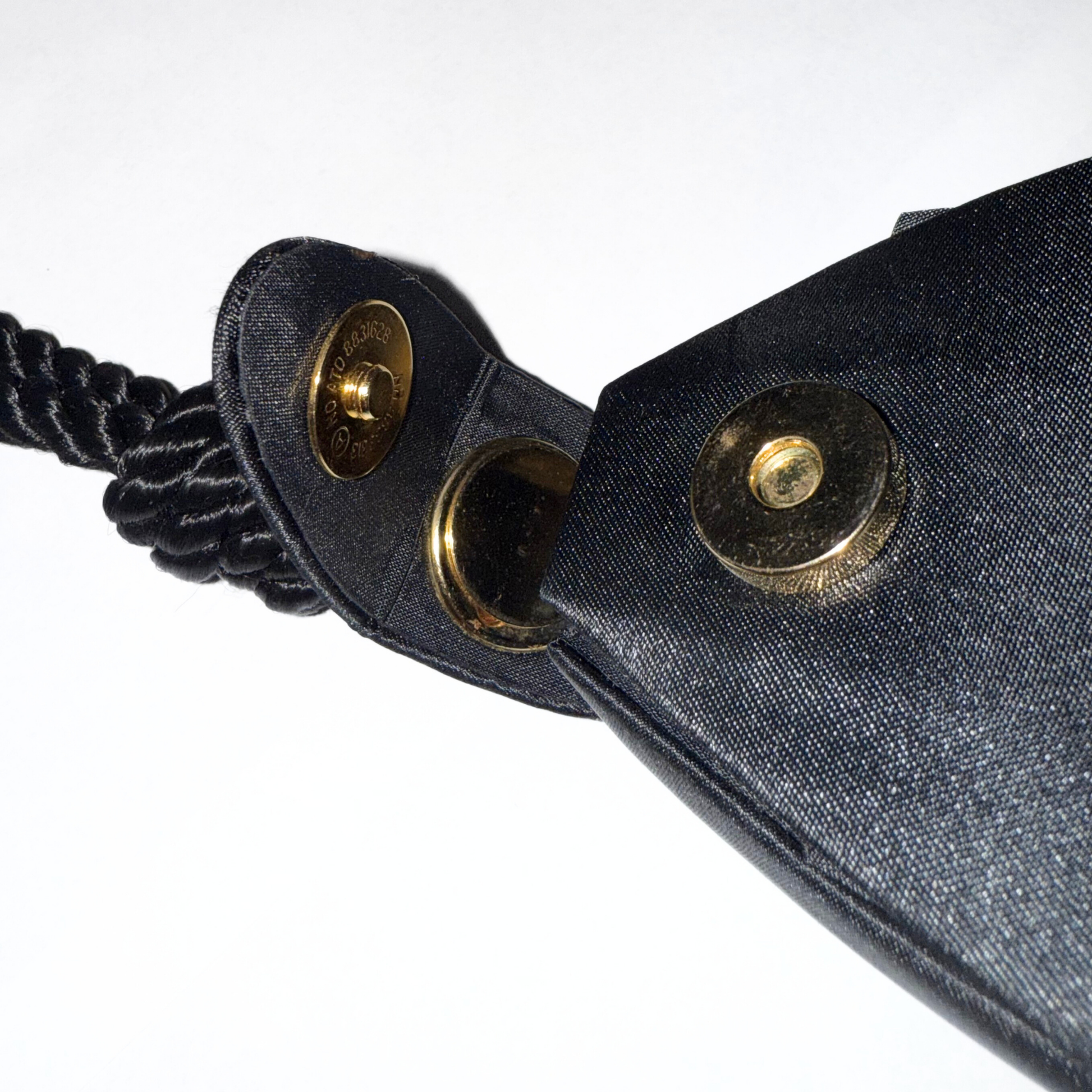 A compact satin pouch from iconic evening wear designer Swee Lo, known for crafting pieces that feel both playful and polished. Features a sculptural silhouette, secure flap closure, and twisted rope handle. Perfect for when you just need the essentials and a little nostalgia.